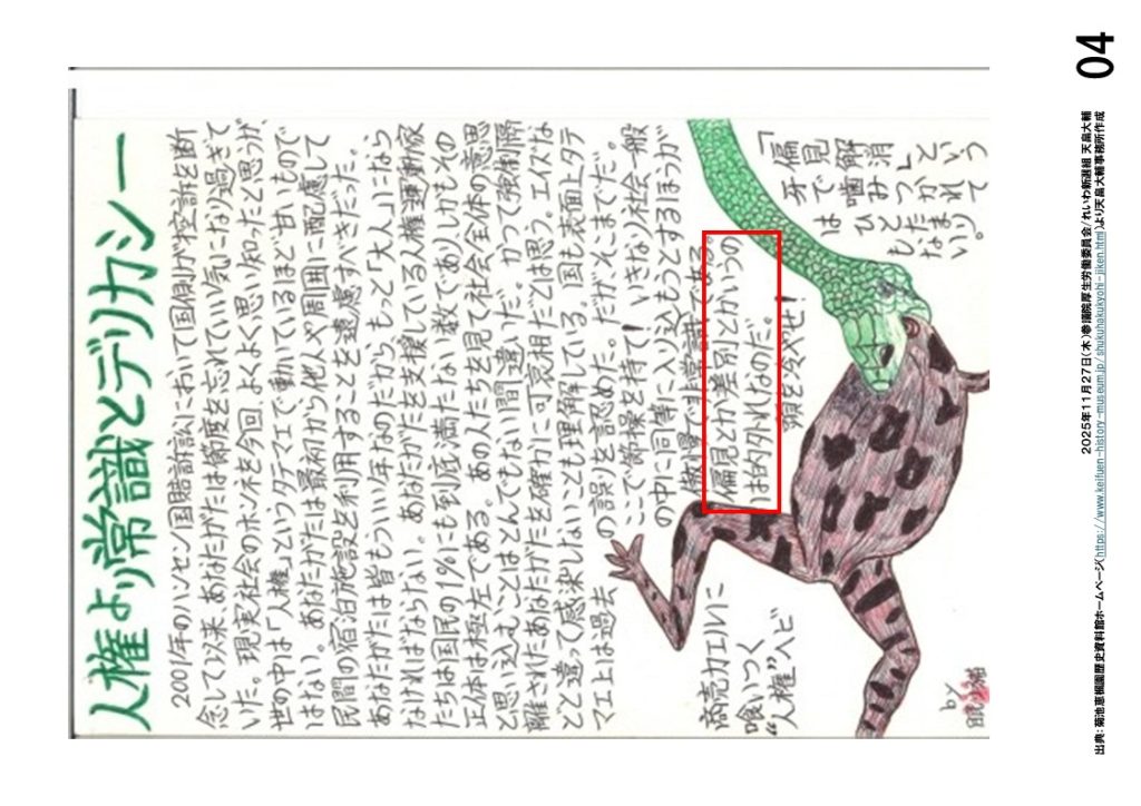 その背景には何があるのか、自治会の太田明会長代行に聞いたところ、「我々が差別、偏見を見過ごさず、その都度提起してきたから」とおっしゃっていました。目を背け、口をつぐみたくなる差別、偏見を直視し、世に問い、後世のために資料として残す、この一連の身を削るような活動を当事者の方々が行ってきました。